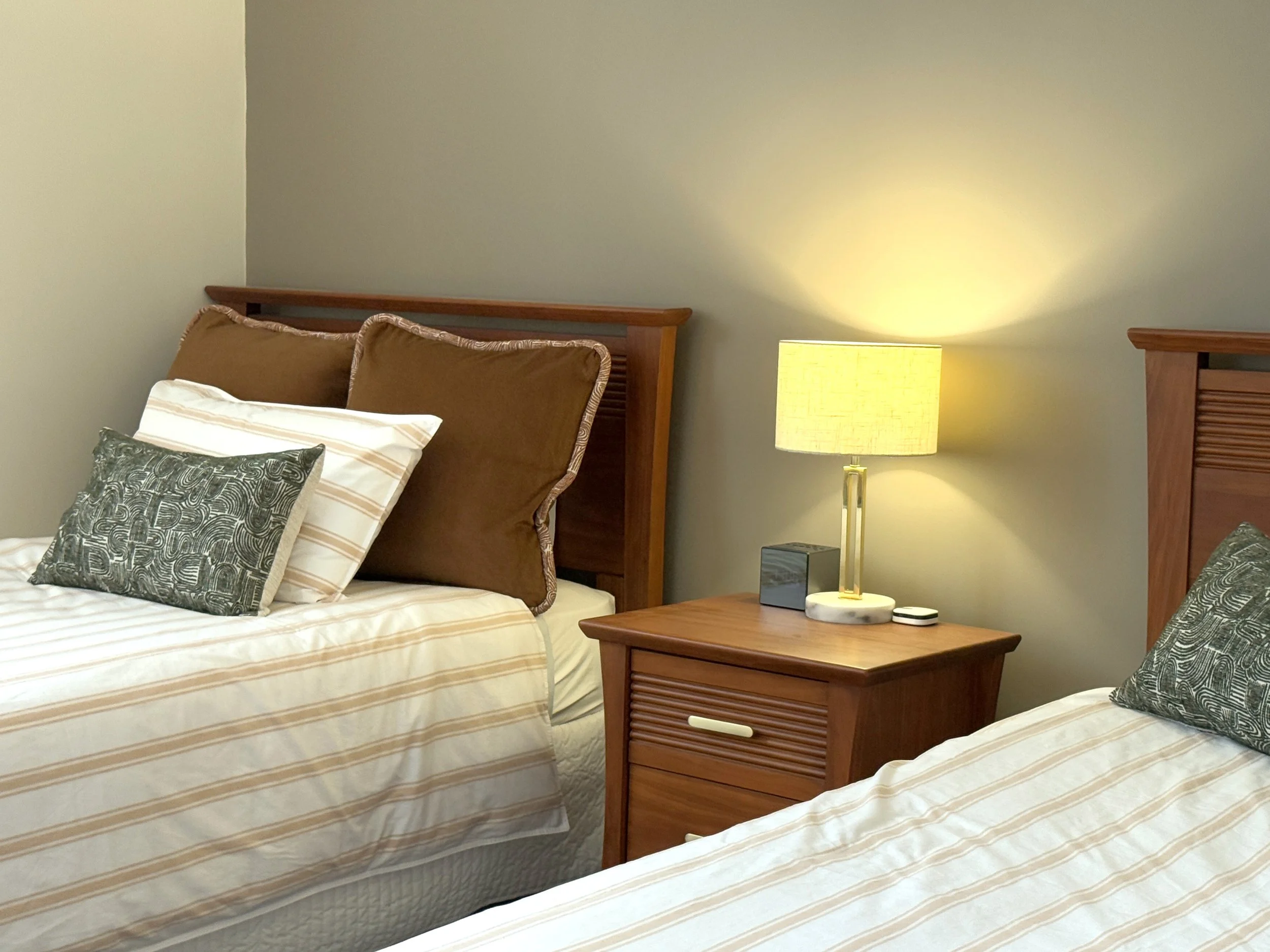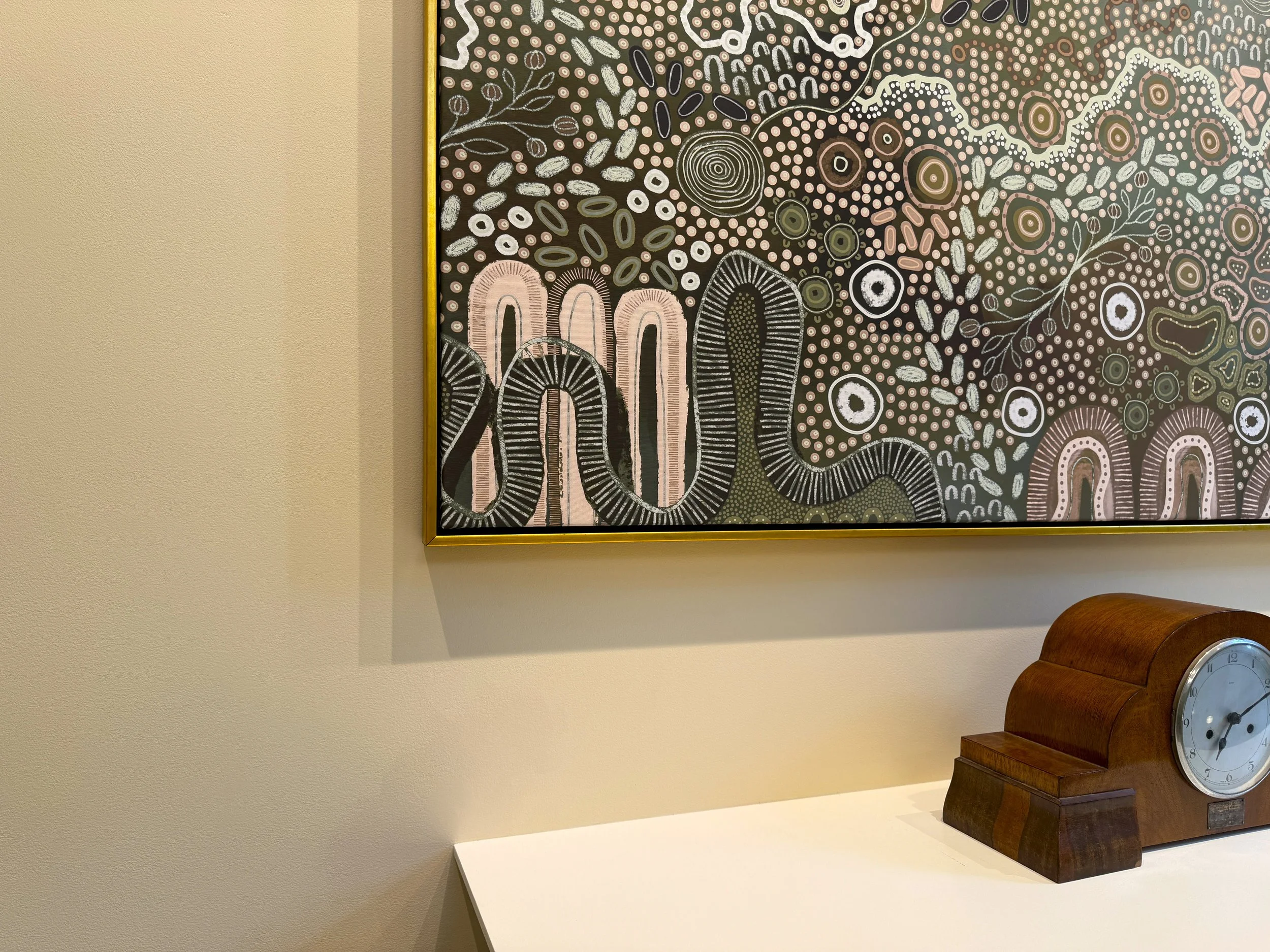 Artwork was chosen to introduce subtle pops of colour within a calm, neutral backdrop.